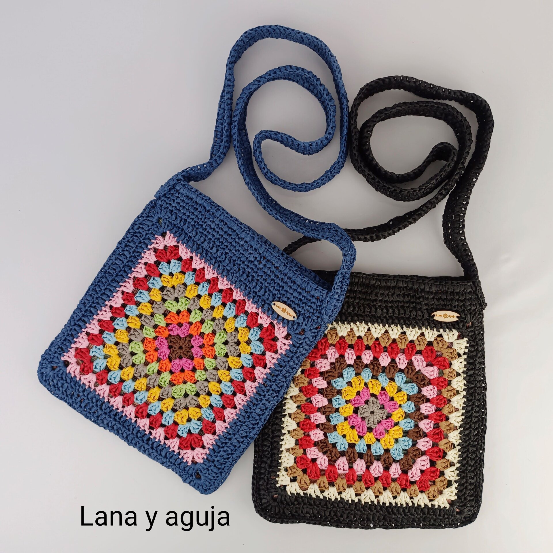 Bolso de crochet, rafia, tejido a mano, diseño original, bolsillo interior.